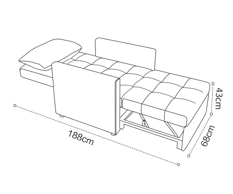 展開床長度: 188cm