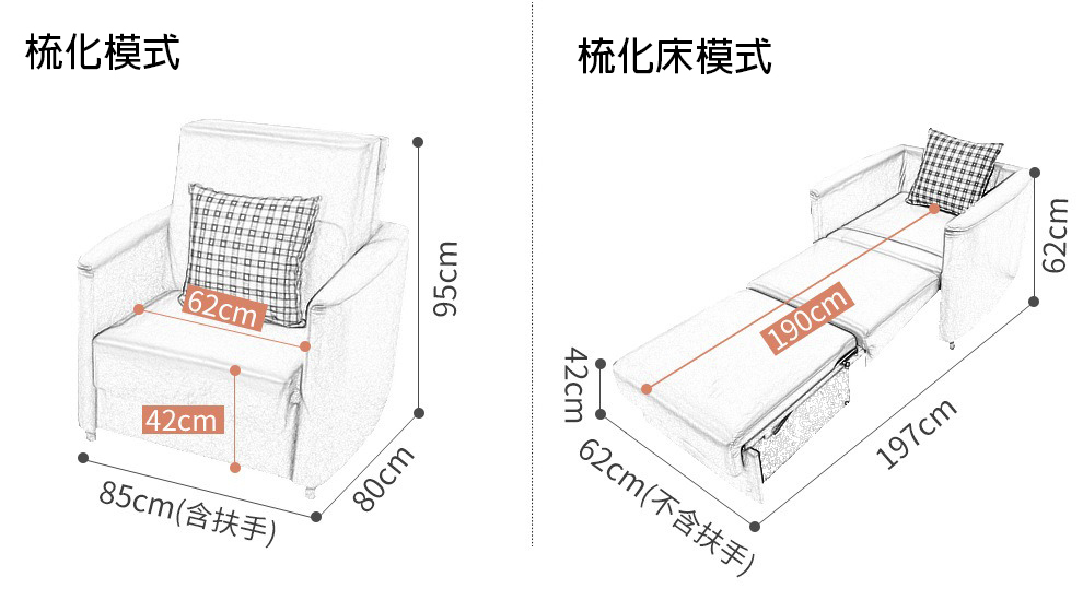 85cm 單人位 85 x 80 x 95